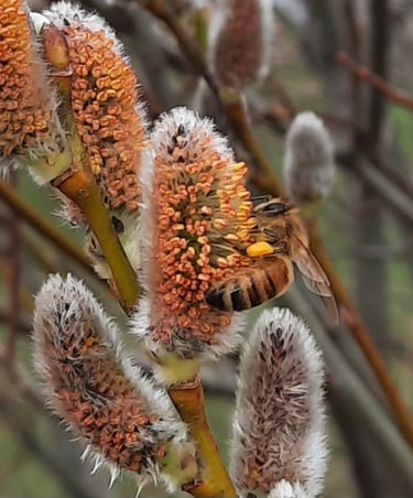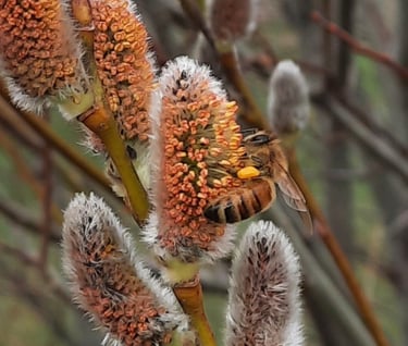 Our small farm uses environmentally friendly methods of farming. Photo of bee taken by Philip Kalb.