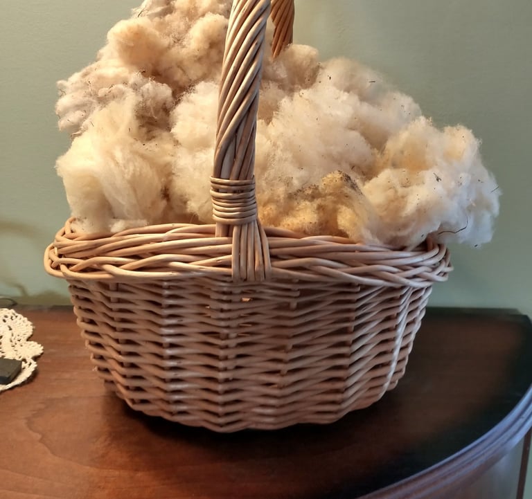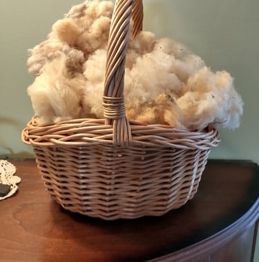 Coming soon is raw wool for all your spinning and felting needs! “Babydoll” fleece generally runs in the 19 to 22 micron range, which puts the fleece in the class of cashmere. Babydoll fleece also has more barbs per inch than any other wool type, making it ideal for blending with other fibers.